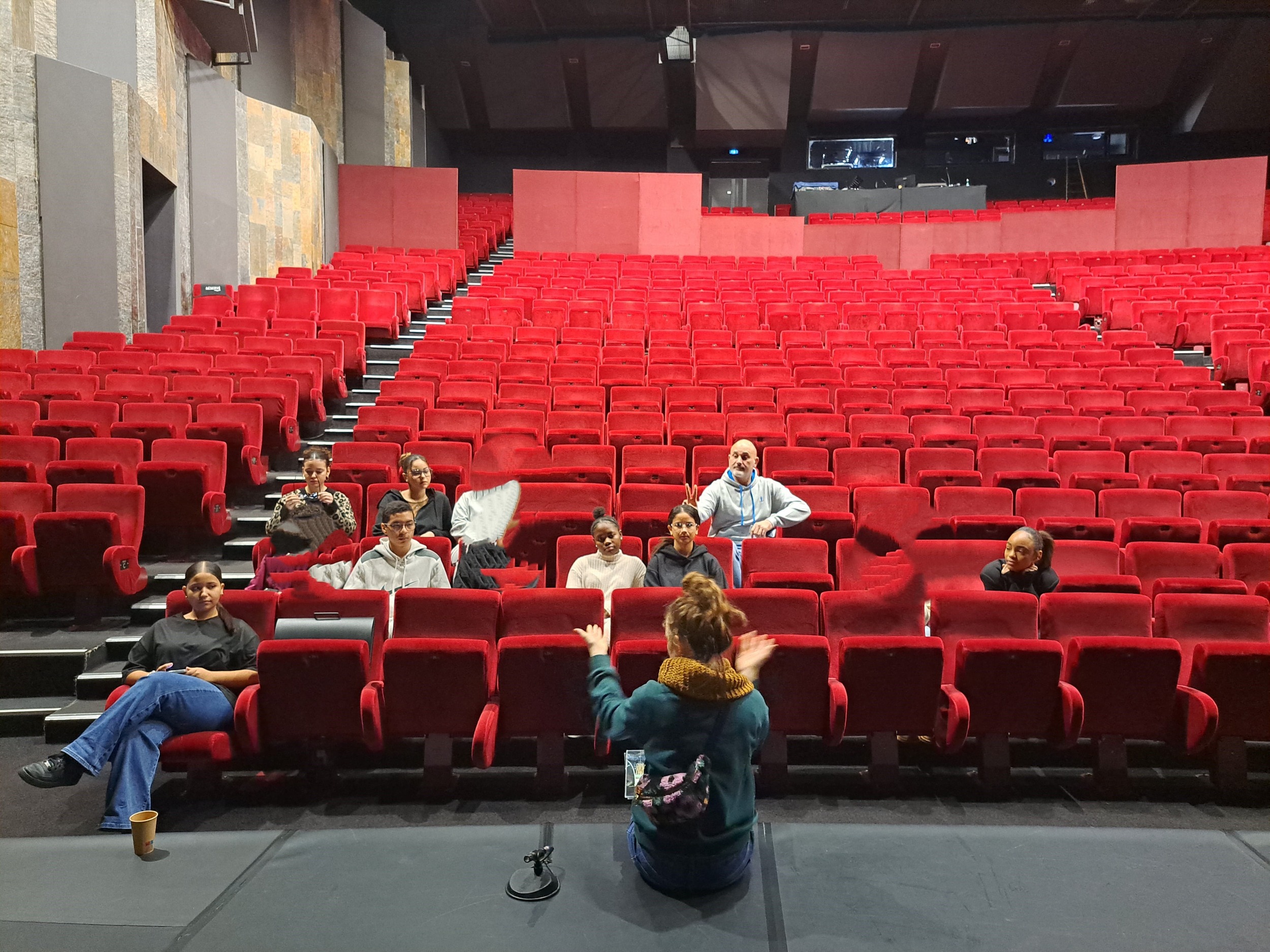 Mathilde Chevalley, travaillant aux relations avec les publics, les a reçu durant 2h pour faire le tour des coulisses, présenter les différents métiers, expliquer comment on monte un spectacle.